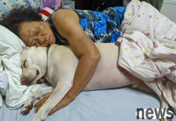 The owner, Ms. Yang, said in an interview with ETtoday that because the air-conditioned room was too cold that day, her mother-in-law put the 24-kg mixed-breed dog [Gama] on the bed and slept while keeping warm. The dog also enjoyed it very much and fell asleep peacefully with her mother-in-law. The relationship is quite good!