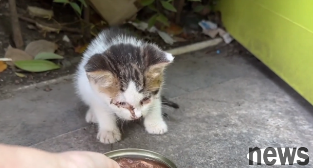 However, the little stray cat did not seem to be in good condition and looked sickly. Moreover, the brother also clearly found abnormal secretions in the cat's eyes. After discovering this little milk cat, the brother was ready to take it away immediately. However, because the brother originally planned to place some cat nests for these stray cats and did not bring any tools, he could only try to get close to it with his bare hands. Considering that the cat may not trust him very much, the little brother was also cautious when catching this stray cat.