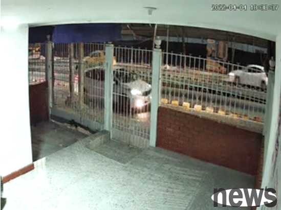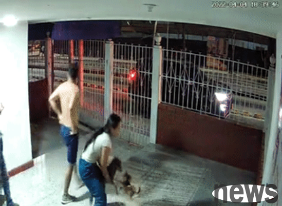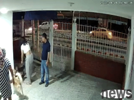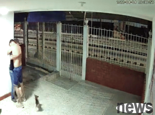 This is a scene recorded by the surveillance camera at the door. The dog rushed home in a hurry...