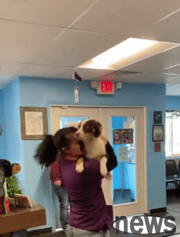 After that, they happily hugged the dog out, cheering excitedly around the dog, and the dog friends also gathered around to say hello to it excitedly.