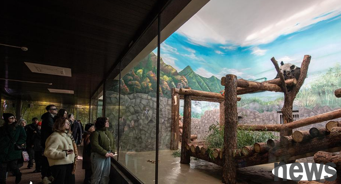 There is an endless stream of tourists coming to watch the giant pandas "Ruyi" and "Ding Ding"