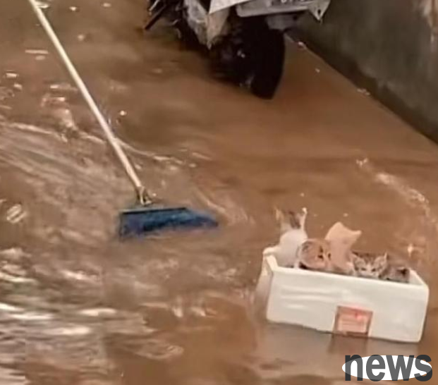 While the mother cat was struggling to survive, she tried her best to leave the hope of survival to the kittens, and held the kittens one by one on the high window sill. The mother cat herself was exhausted, slowly submerged in the turbid flood, and fell down forever. It can no longer hear the cries of the kittens, but the kittens have hope of life!