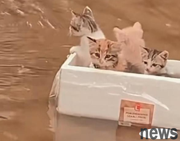 From the beginning to the end, the kittens were very well-behaved. They knew that the villagers were rescuing them. In the foam box, I poked my head and looked at the desolate scene outside. Fortunately, they were not abandoned. With the help of the girl, the foam box floated down the river and reached the hands of the villagers who responded. Thanks to everyone's love relay, these cats are safe and sound.