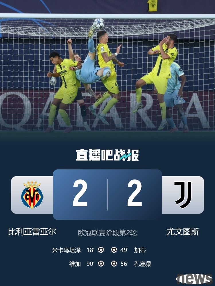 Juventus draws Huang Qian 2-2. Juventus Gati and Concesan score goals, among which Gati scored a wonderful barb goal.