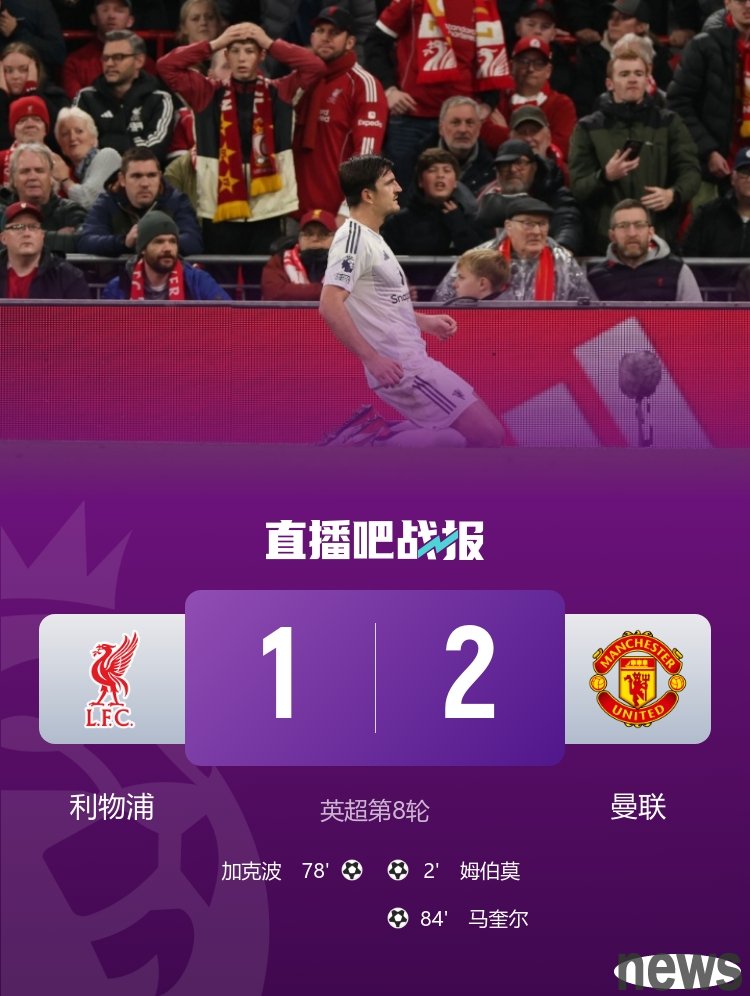 4 consecutive losses + 4 points behind the top spot! Liverpool 1-2 Manchester United Mbemo blitzed Maguire to win
