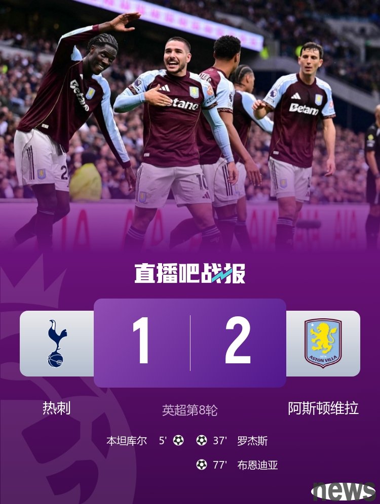 1 win in 4 rounds! Tottenham were reversed by Villa 1-2. Rogers and Buendia both won 3 consecutive games in the world.
