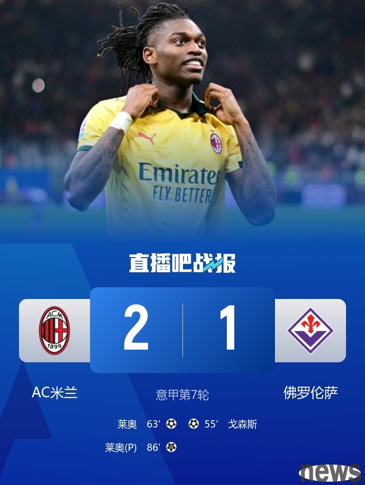 Reach the top without defeat in 6 rounds! AC Milan reversed Fiorentina 2-1, Leo scored twice and Jimenez scored points