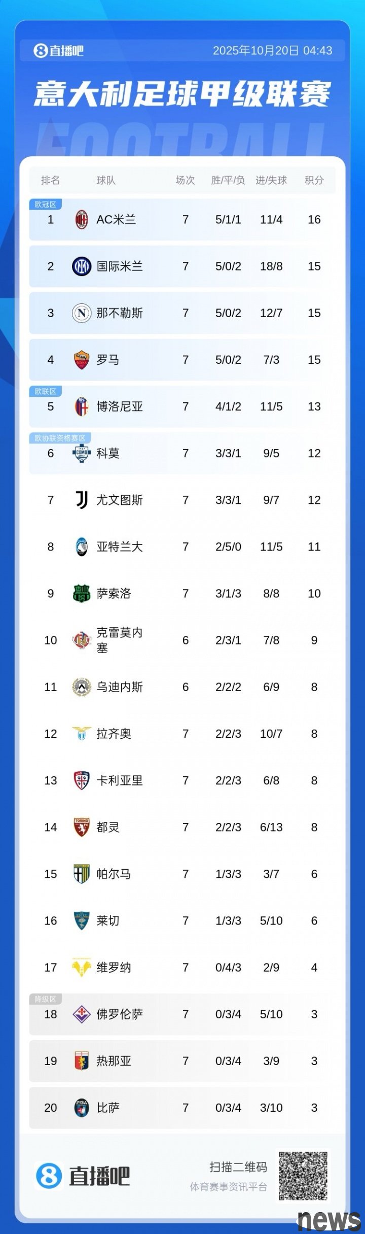 will reach the top! Serie A standings: Milan dominates the top spot with a 1-point advantage, Inter Milan, Napoli, Roma 2-4