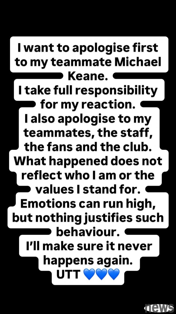 Gueye posted on social media, apologizing for his behavior: "I would like to first apologize to my teammate Michael Keane. I take full responsibility for my reaction. I also apologize to my other teammates, staff, fans and the club."
